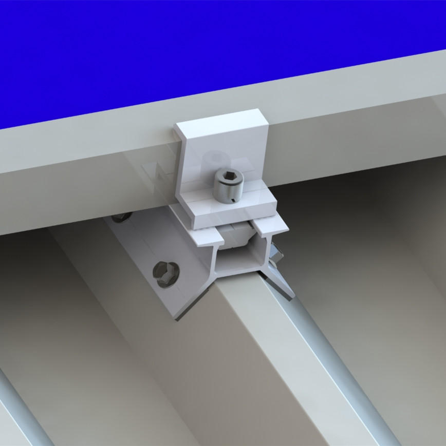 The 범용 클램프가 적합합니다. 대부분의 사다리꼴 금속 지붕, 쉬운 설치.
