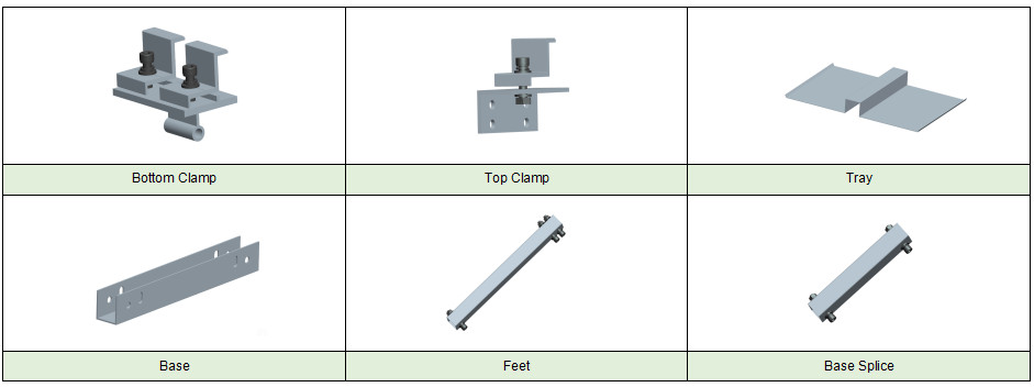 설치 사이트 평평한 옥상 / 오픈 필드 최대 풍속 ≤60m / s 적설량 ≤1.4KN / M2 경사각 0 - 15 정도 해당 모듈 프레임 또는 프레임 없음 표준 AS / NZS 1170, ASCE 7 - 10, JIS2017 재료 AL6005 - T5, SUS304 안티 - 부식성 양극 산화 처리 색깔 은 보증 10 년 보증