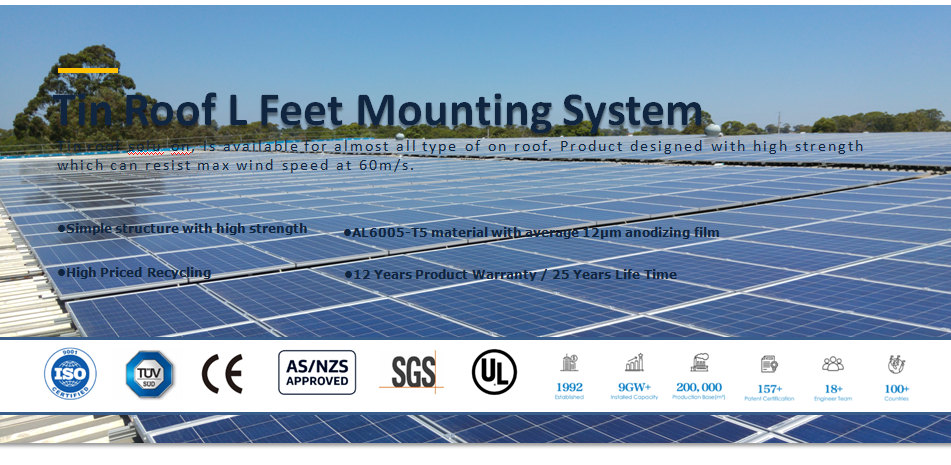 금속 지붕 장착 시스템은 골판지 금속판 , 사다리꼴 금속판 으로 루핑하는 데 적합합니다 . 패 피트. 주석 지붕 솔루션은 거의 모든 유형의 주석 지붕에 사용할 수 있습니다. 60m/s의 최대 풍속을 견딜 수 있는 고강도로 설계된 제품입니다. 주요 재료는 평균 12μm 아노다이징 필름이 있는 AL6005-T5입니다. 패스너는 고강도 및 높은 부식 방지 기능을  갖춘 스테인리스 스틸 소재입니다  .