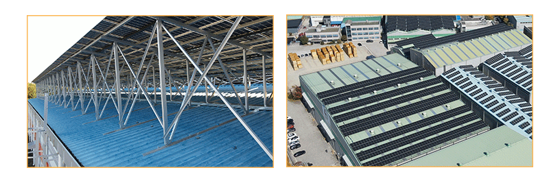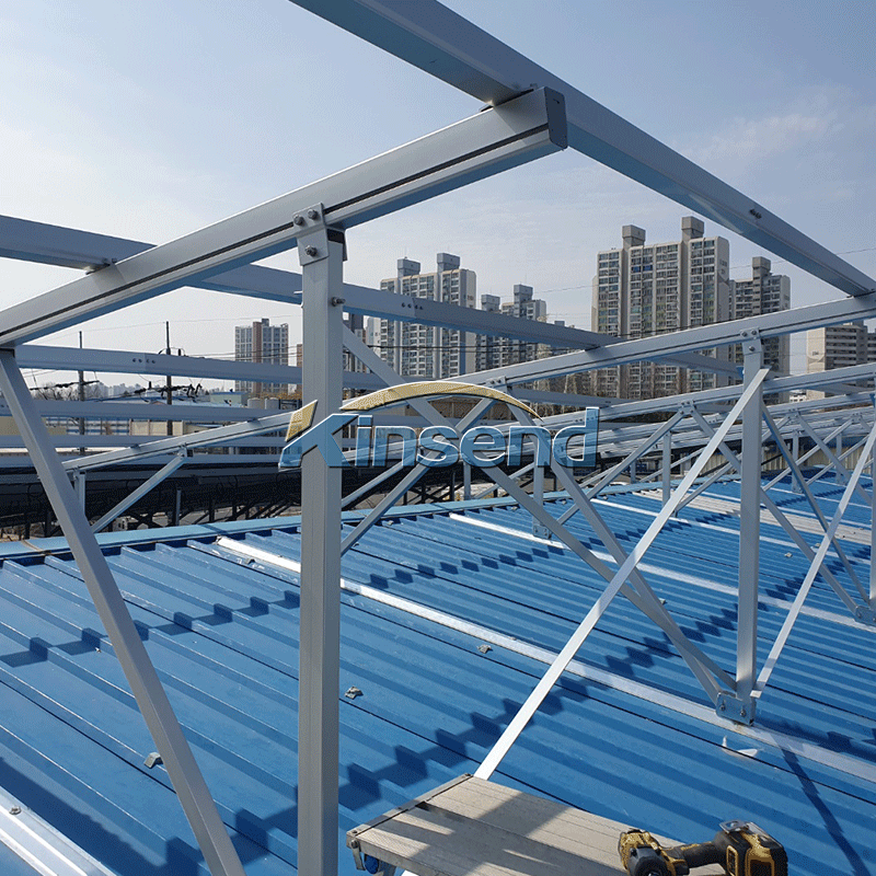 킨센드의 에이알루미늄 솔라 메탈 루프탑 장착 시스템 양극산화 처리된 알루미늄 합금 구조를 사용하여 전체 시스템을 가볍고 내구성이 뛰어나며 재활용 가능하고 매우 견고합니다. 또한 맞춤형 베이스 브라켓 다양한 조합이 가능합니다. 높이와 각도 조절이 유연하여 다양한 지형에 적용 가능합니다. 대부분의 구성품은 배송 전 미리 조립되어 현장에서 드릴링, 절단 등의 작업이 필요 없으며, 잠금 장치만 조정하면 설치가 완료됩니다.