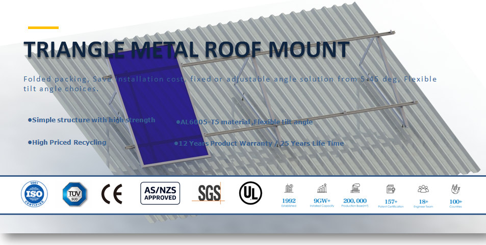 금속 지붕 태양 전지 패널 마운트 삼각대 각도 알루미늄금속 지붕 클램프 에 설치하거나 콘크리트에 침투 할 수 있습니다 . 고도의 사전 조립, 쉬운 설치 1,2,4 또는 8 모듈 의 소형 시스템에도 적합하며 고정 각도, 조정 각도 모두 가능합니다.
