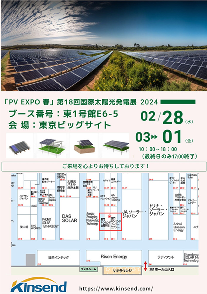 Kinsend에 관심을 갖고 오랫동안 협력해 주신 고객과 친구들에게 진심으로 감사드립니다. 이번 도쿄 전시회에서는 여러 모델의 태양광 장착 시스템을 전시할 예정입니다.