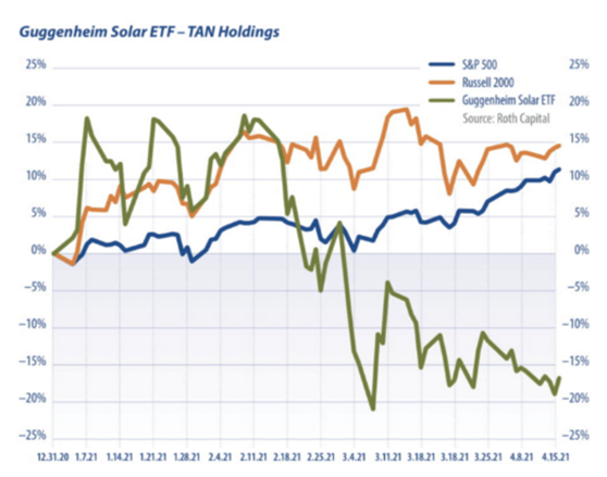 올해 4 월에, invesco Mac 's 글로벌 태양 색인은 상당히 더 나쁜 것으로 수행됩니다. S & P 500 및 다우 존스 산업 지수. Guggenheim 태양 ETF (TAN) 8.7 %, S & P 500 및 다우 로즈 3.4 % 2.7 % 각각. 작년 12 월과 비교하여 Guggenheim Solar ETF (TAN) 23.2 % 증가한 반면 표준 & 가난한 사람 500 색인과 다우 존스 색인은 2.6 % 만되었습니다.