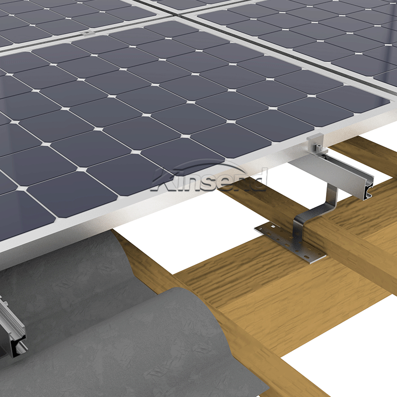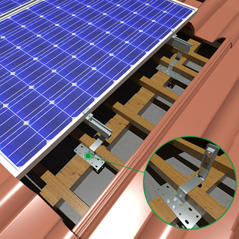 Use universal stainless steel roof hook for tile roof rack mounting system,stainless roof hook installation with Self-tapping screw M6.3*80mm Match with aluminum rail,Fix the solar panel with module clamps. A simple and fast installation solution